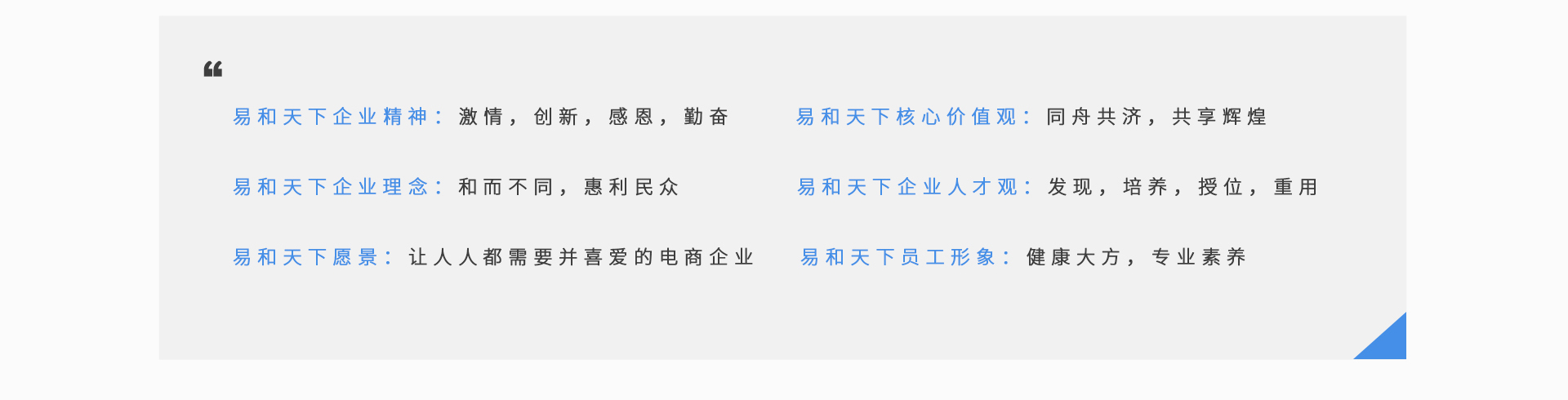 易和天下凭借上市公司背景,与各大知名品牌达成战略合作,构建完整的社交电商产业链,联手打造全新模式电商团购平台:团购板块、购物有礼板块、商 城板块。易和天下秉持“共同富裕”的核心理念,希望在自身不断发展壮大的同时能够承担更多社会责任。通过持续助力乡村振兴产业,上架更多特色农产品,提高乡村收入水平,助力中国粮食安全建设。