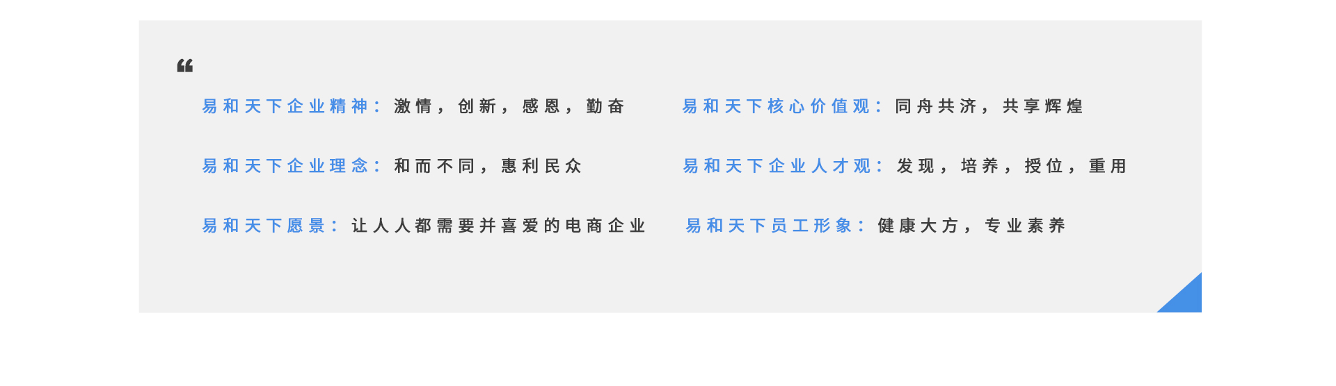 易和天下的事业是一份值得全民参与,共建共享的事业。在未来,易合天下希望通过自身的不断努力,带动所有在平台进行消费的用户与合作伙伴,实现共富共赢。